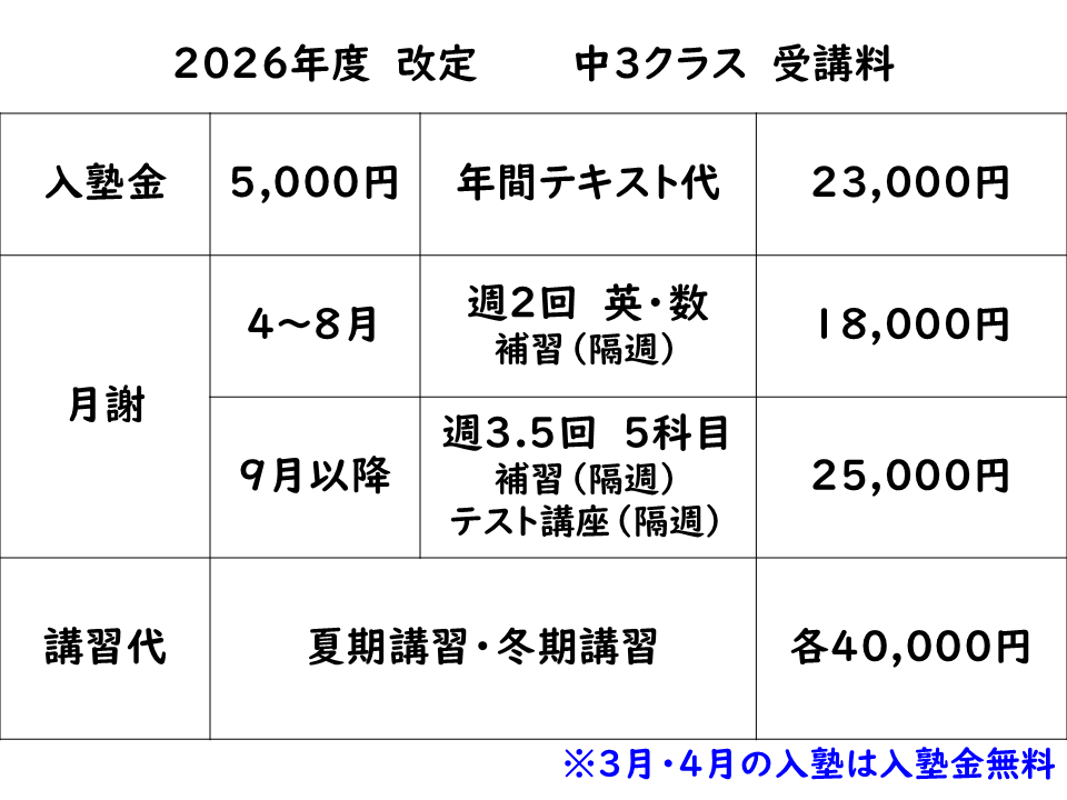 夏休み以降は週3~4日、5科目の授業+過去問などのテスト講座を行います。